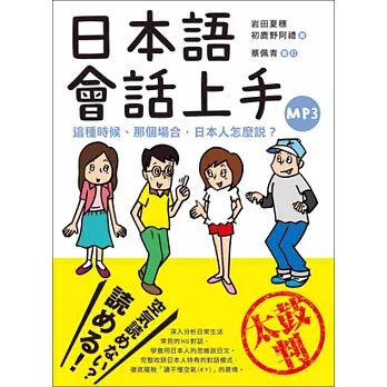 依場合、時機、對象的不同調整對話內容是許多國家共有的語言現象,而在重視他人觀感、強調和諧的日本更是如此,也因此在日本對於不懂得看狀況說話有所 謂的「讀不懂空氣 (KY)」的說法。本書以15個日常生活常見的場景為基礎,深入分析一般人(尤其是非日文母語者)常見的NG對話,並提供解決之道;書中收錄日本人特有的 對話模式,讓學習者學會用日本人的思維說日文,徹底擺脫「KY」的窘境。